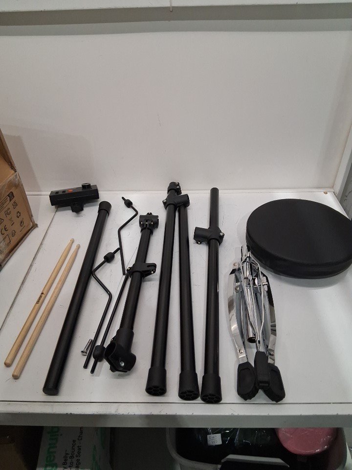 Some light marks on cymbals from prior gentle use (see photo) Some generic hardware missing for seat - locking pin Some hardware for construction may be missing Tested for basic power/function- working