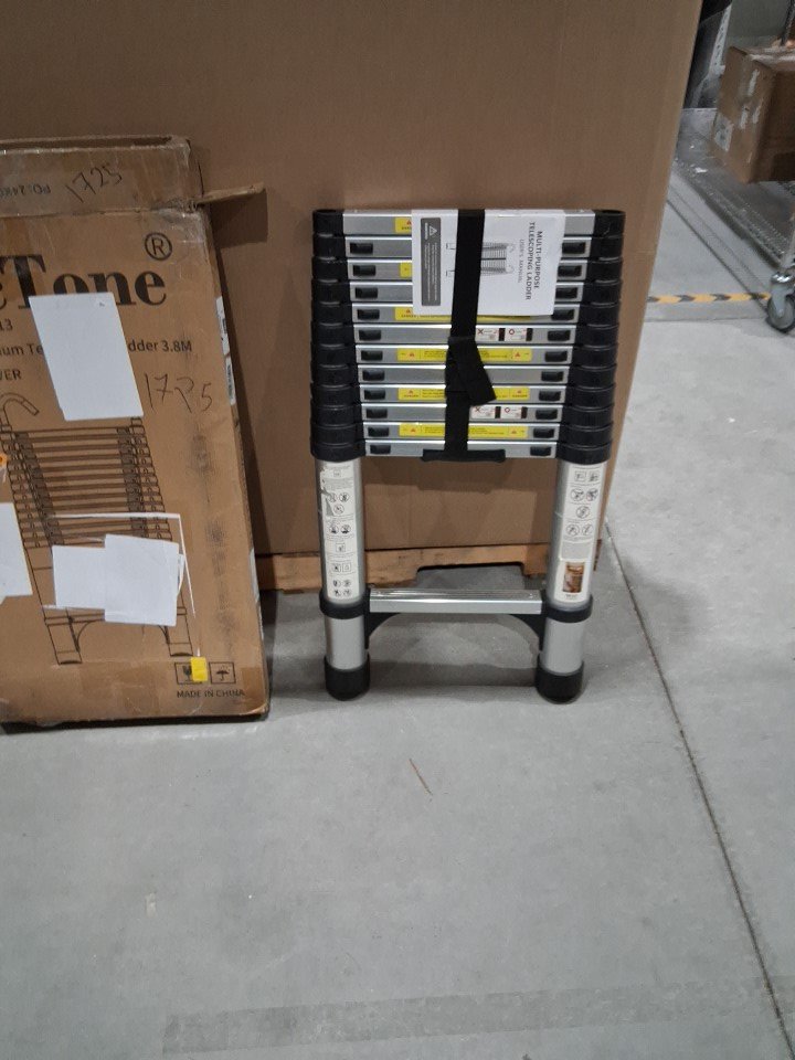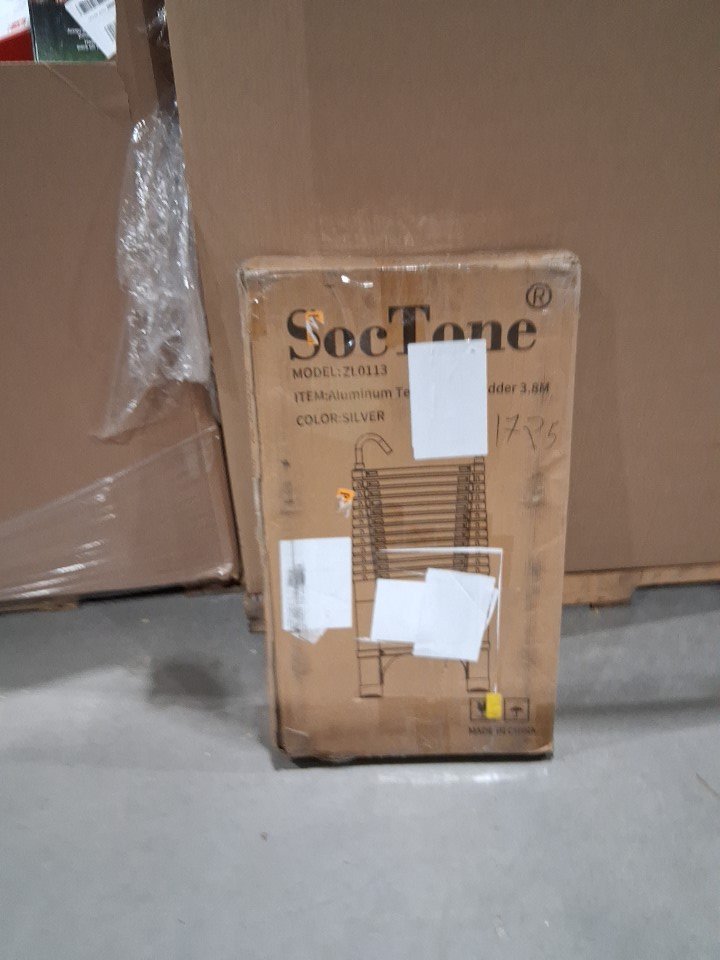 soctone telescoping aluminum lightweight extension ladder, 330lbs capacity - 12.5ft- silver (model: zl0113)
