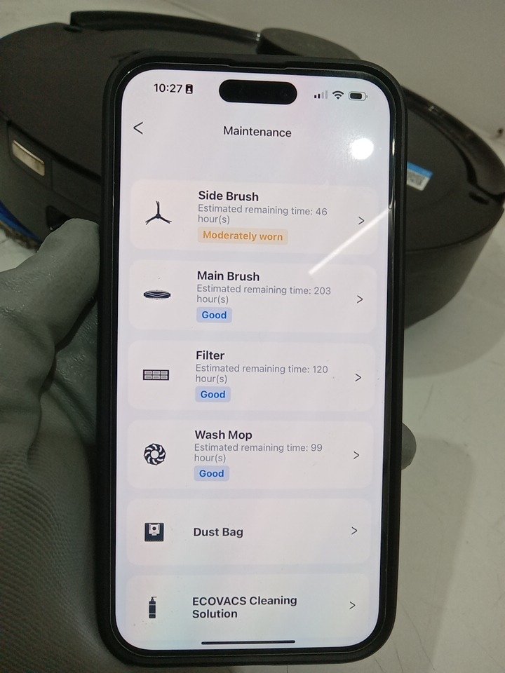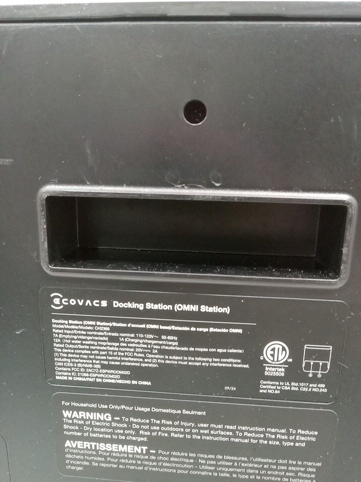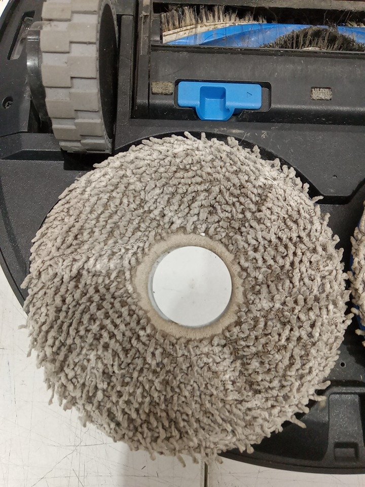 Please note that the hair/dirt/dust residue on the docking station tray, main floor brush, side brush and on the main floor mop pads. There are scratch marks on the top/sides of the robo vacuum and around the docking station. There are water stains on the water tank due to previous use. Recommended to be cleaned before use. Tested for power, suction, movement, charging, app connectivity. (Please see photos)