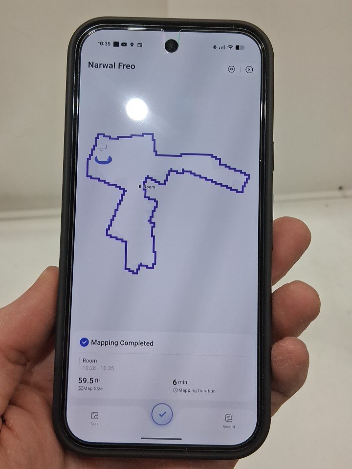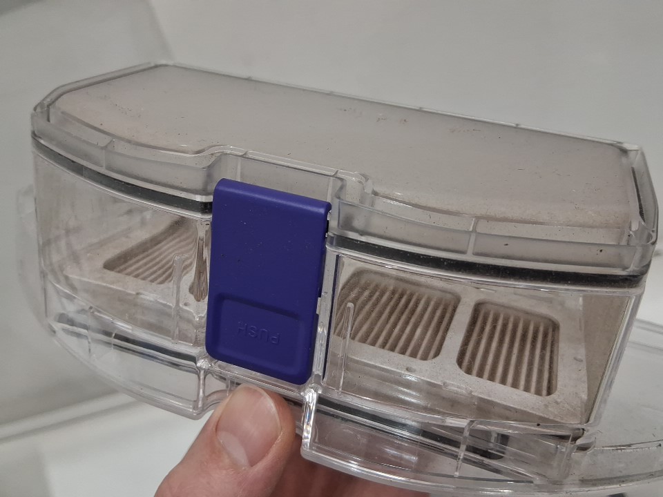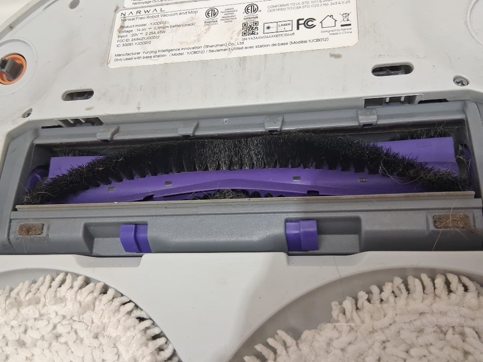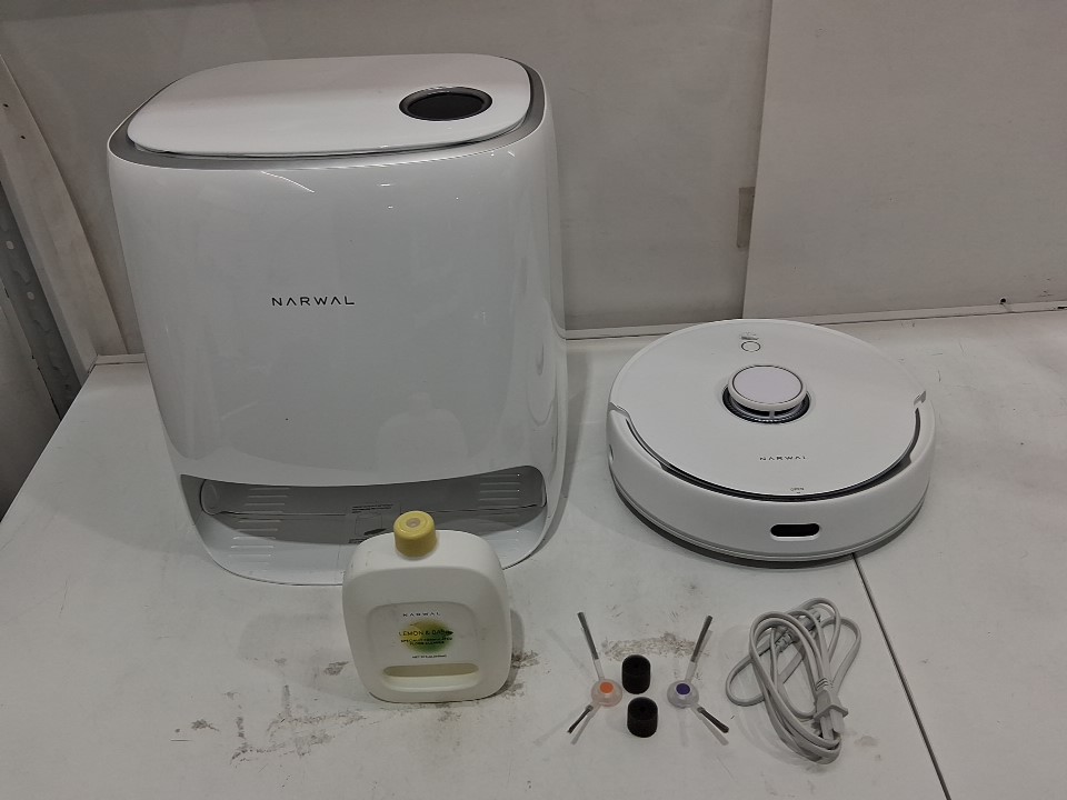 **Tested for power, app connectivity, basic functions (mapping/return home).** Item has minor dust/debris build-up in the docking area and dustbin/filter area, light wear on the mop pads, main roller and side brushes, residual water in the reservoirs, minor markings along the exterior from previous gentle use, see photos.