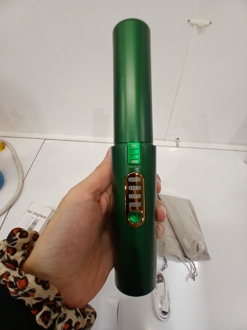 Mtcizi cordless anti-scalding portable travel 2-in-1 mini hair straightener & curler - green (model: yl-007)