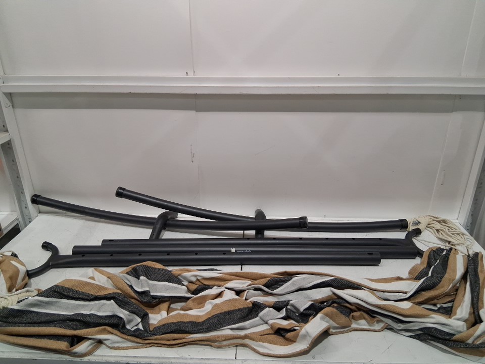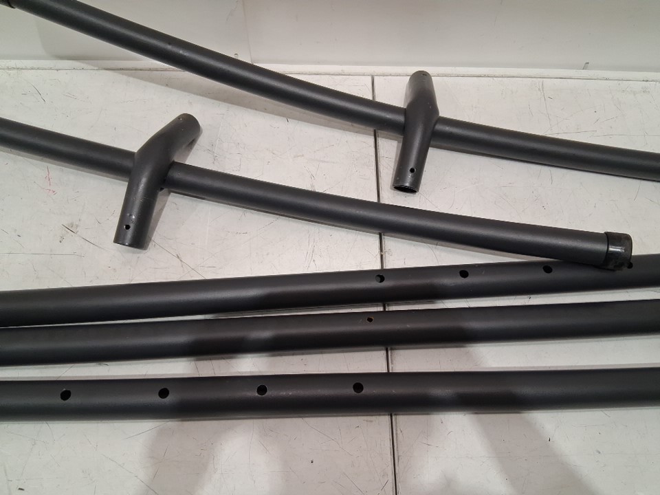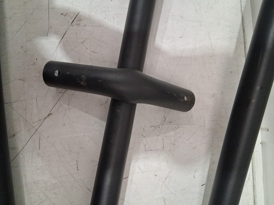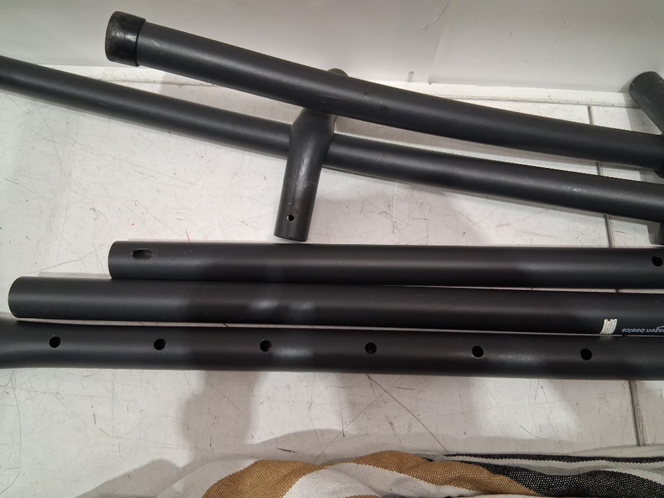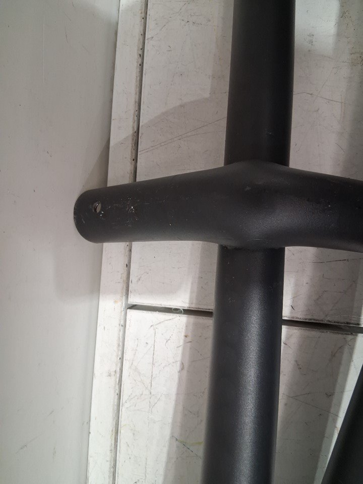 item has some scratches on the bars, and some dirt item is also missing the hardware.