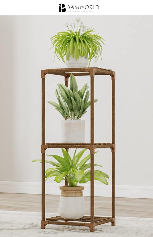 Bamworld 3-tier Corner Plant Holder STAND for Multiple Pots - 31.4'' X 11.8'' X 11.8'' - BROWN