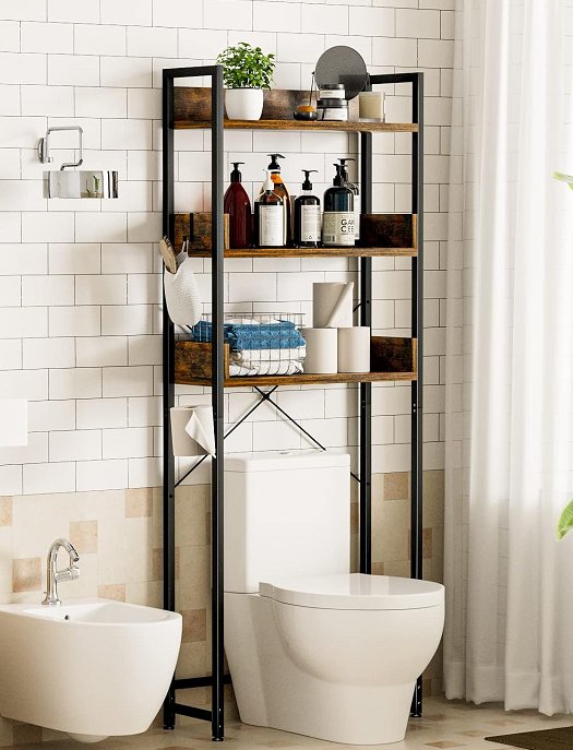 otk over-the-toilet 3 tier bathroom organizer shelf - 63.7" x 24.8" x 9" - black/brown