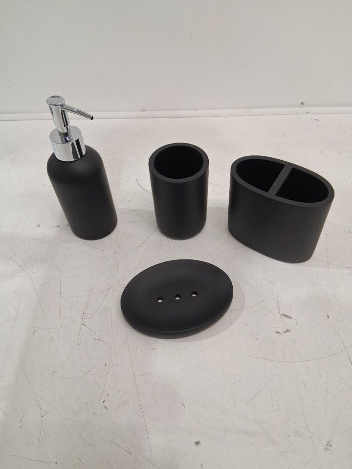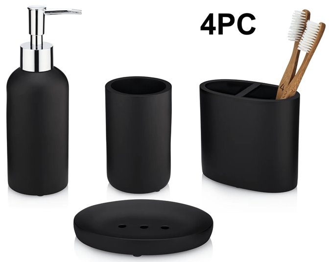 4PC Essentra Home Matte Black Bathroom Accessory Seat - Black/Silver