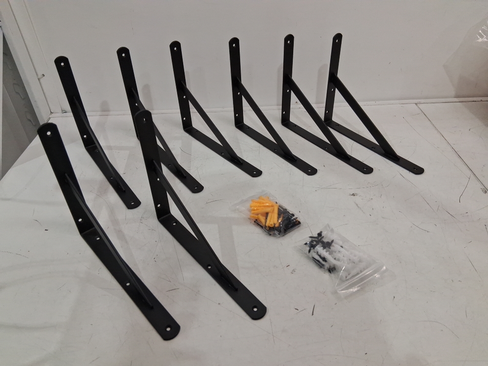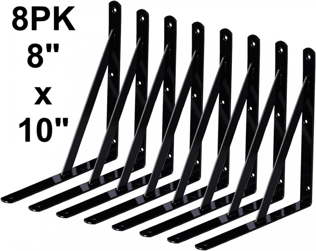 8PK Winker Black Iron Metal Shelf L Bracket - 8" x 10" - Black