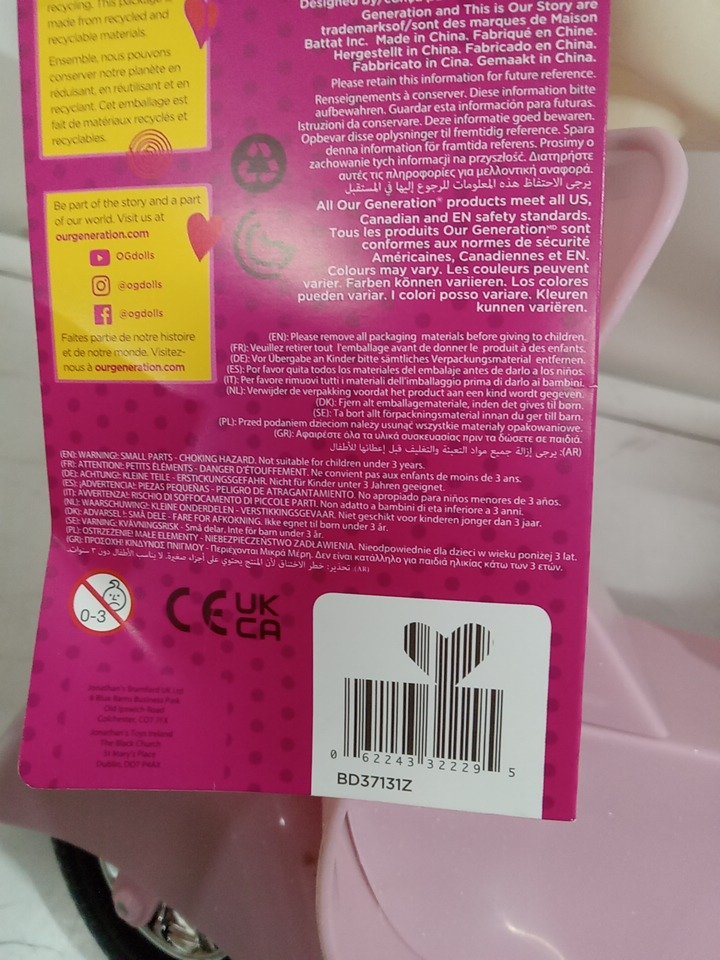 Our Generation scooter with helmet specially adapted for dolls our Generation - 20" - pink and white (model: BD37131Z)