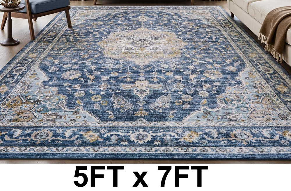 vintage AREA RUG - 5FTx7FT - BLUE/WHITE (style: ca-fhnp -5x7- blue)