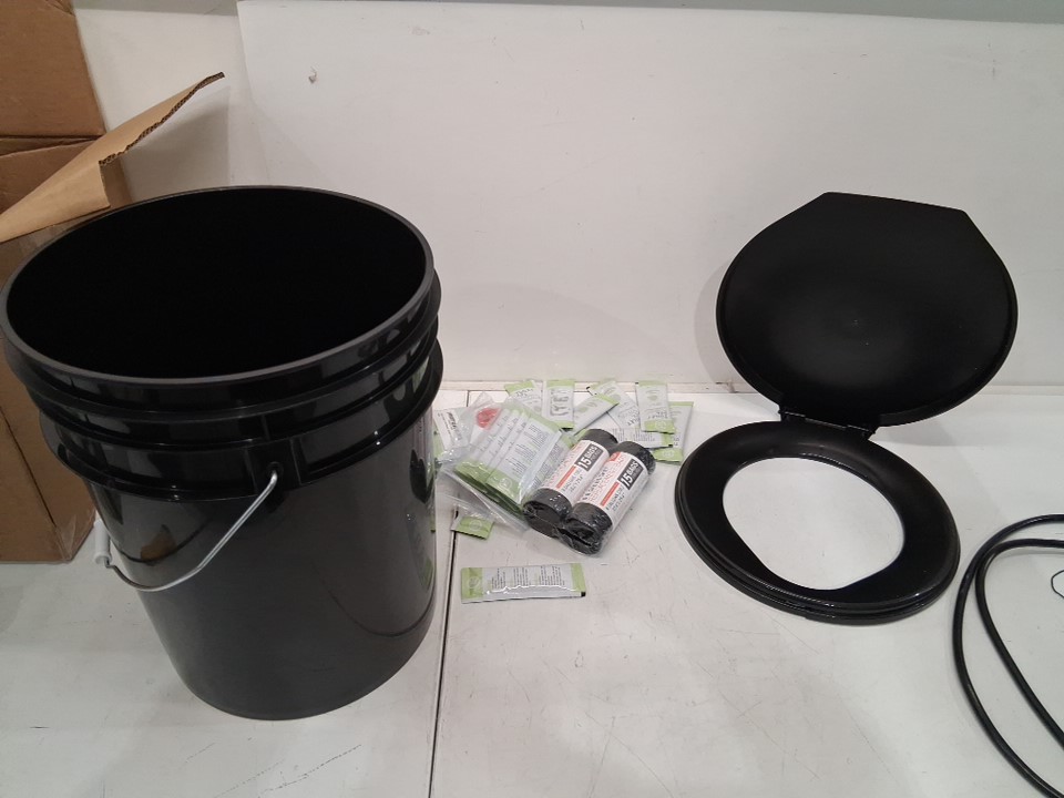 72 HRS Premium Portable Camping Toilet Seat with Lid AND BUCKET for Camping, Hiking, Emergencies - 16" - BLACK