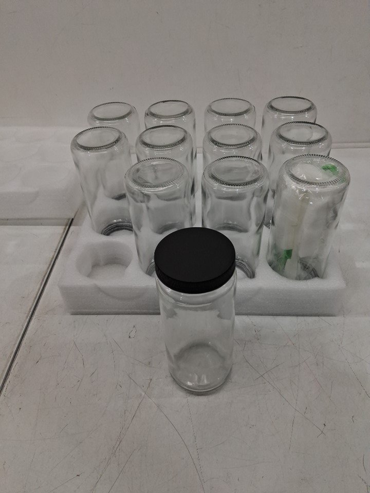 12PK glass bottles WITH LIDS 16OZ - BLACK