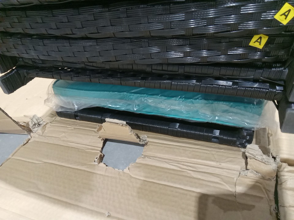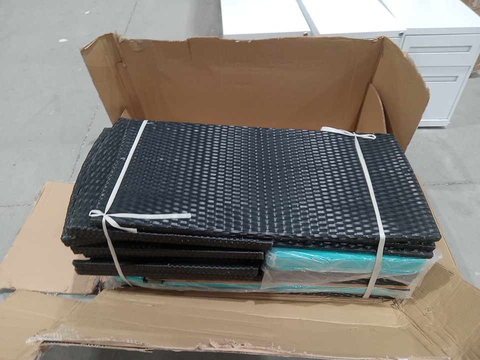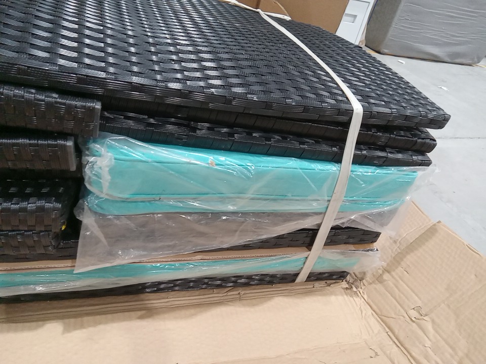 4PC Costway Rattan and Metal Frame Outdoor Conversation Set with Cushions and Tempered Glass Coffee Table - Turquoise / Black (Model:HW63239TU)