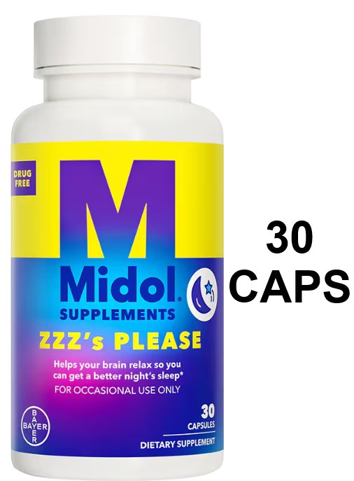*Recently expired* (30 CAPSULES) MIDOL SUPPLEMENTS ZZZ’S PLEASE help to brain relax -