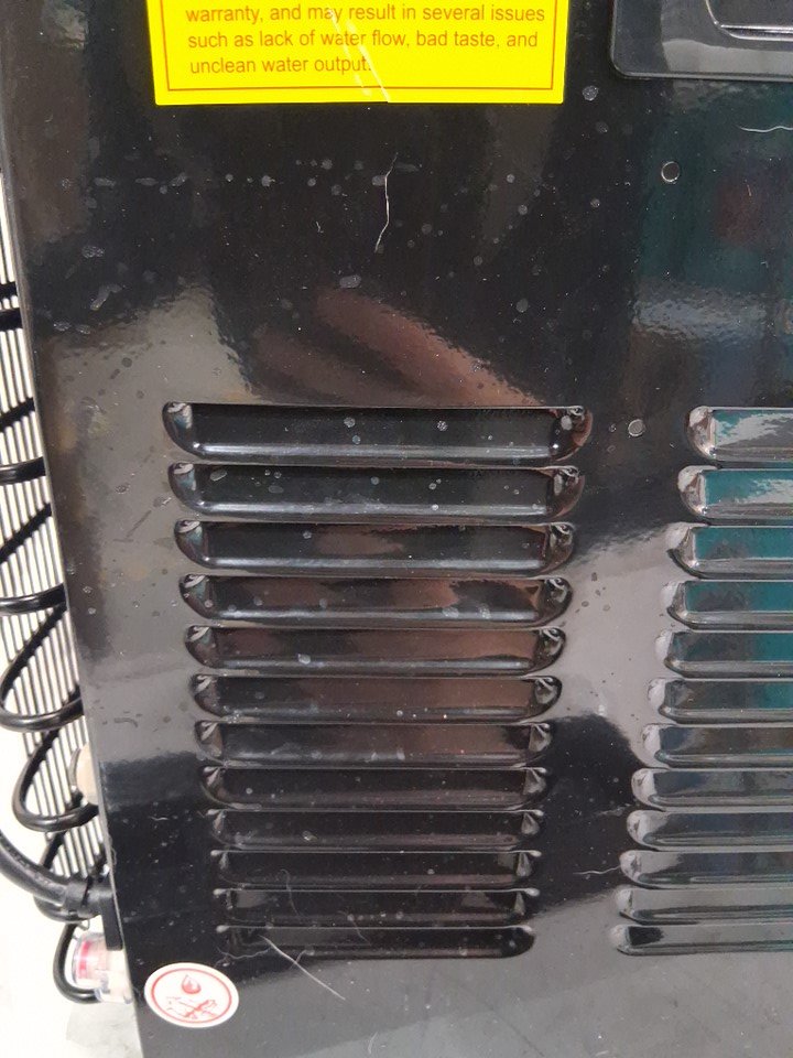 Some white scuff marks on the dispenser and also in the water catcher tray from previous use.