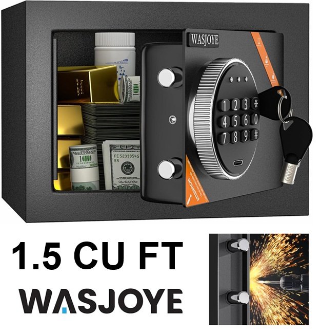 WASJOYE Security Home Safe Box Cabinet with Digital Keypad Safety Key Lock Small Safe for Home Business Office Hotel Money Document Jewelry Passport Storage - 1.5 Cu. Ft