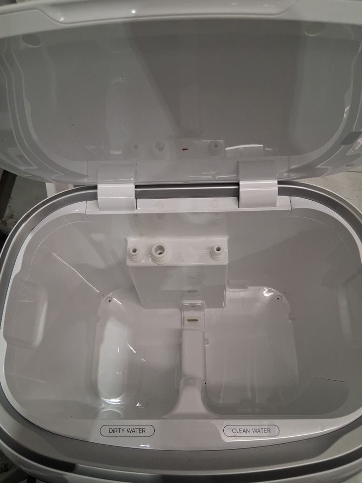 Two pieces have dirt/dust build up on them from previous use, half of the cleaner in the bottle has been used and bottom of vacuum shows signs of use. Tested for power.
