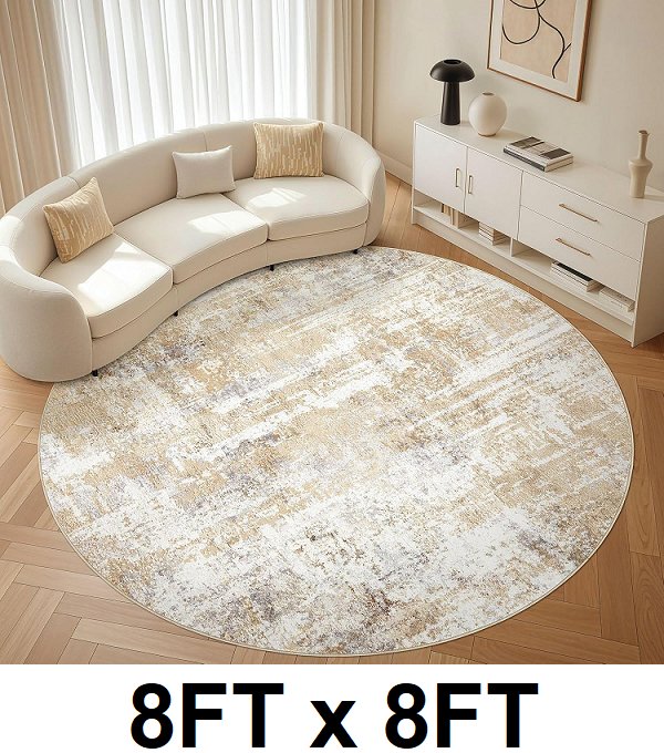 LOONGRUG Abstract non slip indoor circular rug - 8FT x 8FT - Grey/Gold