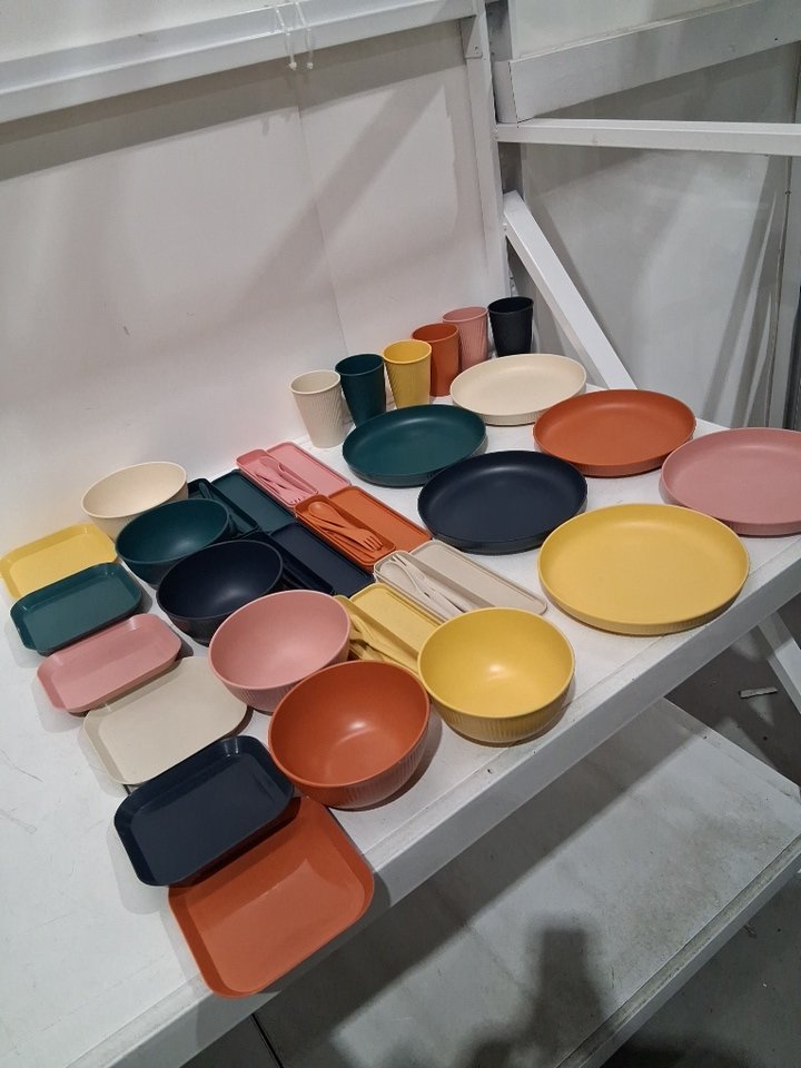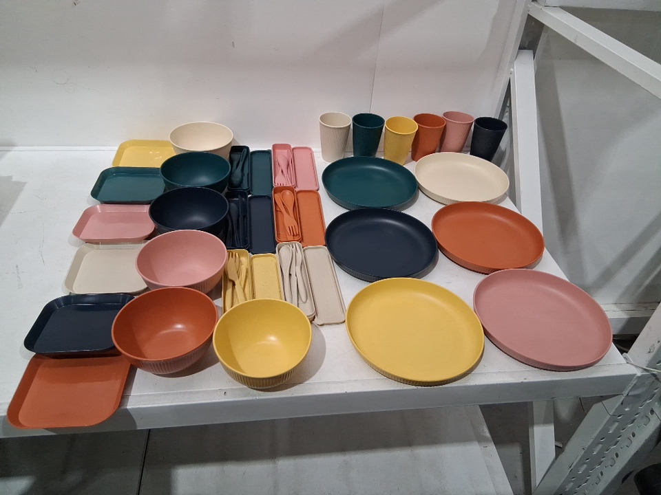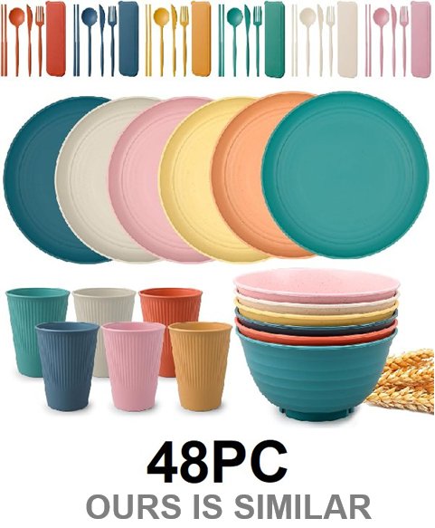 48PC Unbranded Microwaveable Wheat Straw Dinnerware set - Multicolor