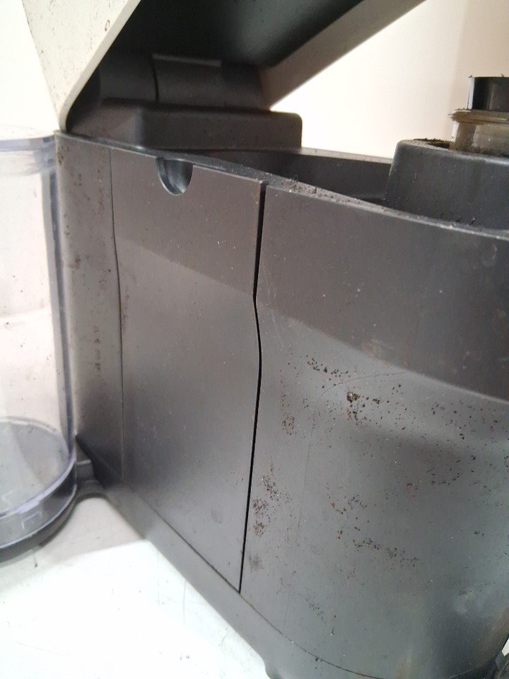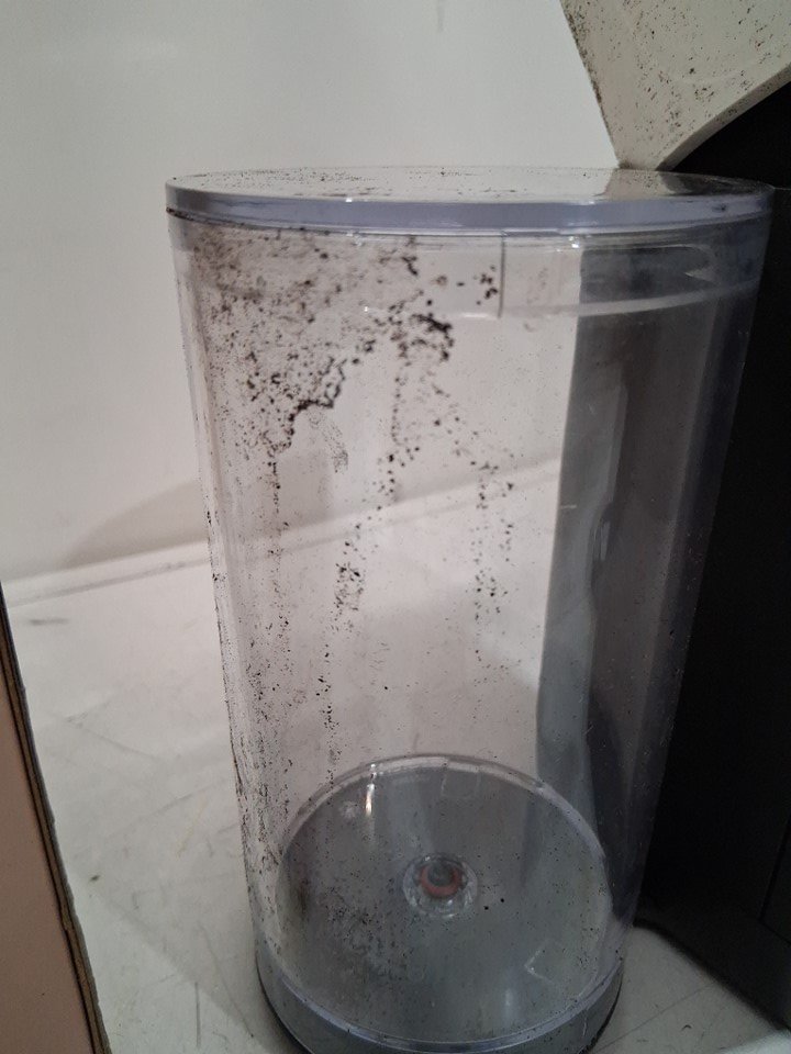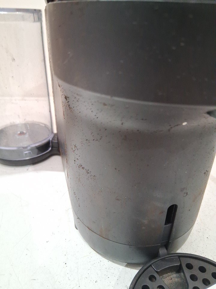 please note there are significant amounts of coffee grounds all around the item from light use but. This will need to be cleaned very well as the grounds are in the water chamber, coffee pot dispenser and the main lid.