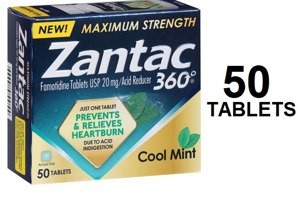 (50 TABLETS) Zantac 360 Maximum Strength Acid Reducer - Cool Mint
