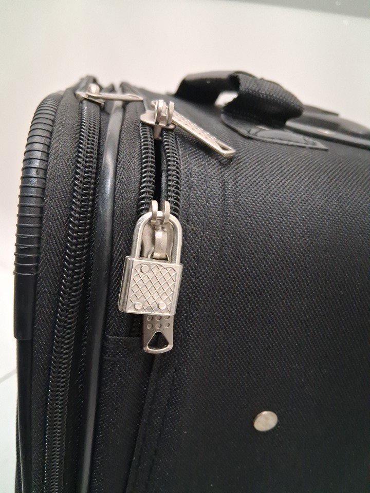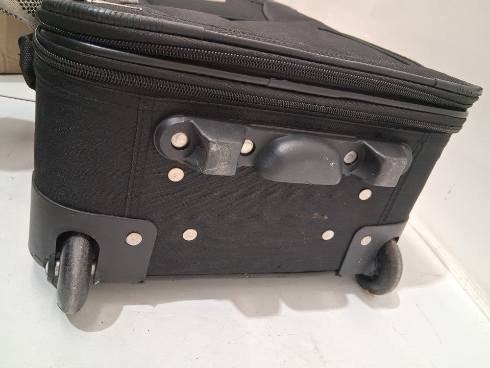 Please note item has significant wear on wheels and some scuffing. There is a small lock attached to the zip from previous use.