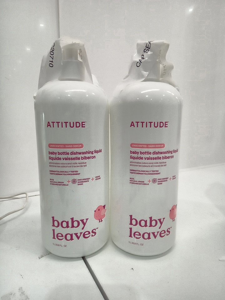 2 ATTITUDE baby leaves BABY BOTTLE dishwashing liquid pump bottle - 1l /each - unscented