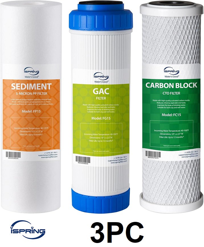 3PK ISPRING 6-MONTH PREFILTER REPLACEMENT Set for Standard Reverse Osmosis RO Systems (model: F3)
