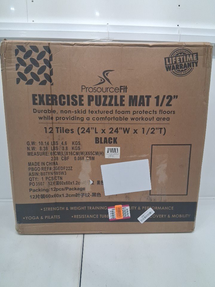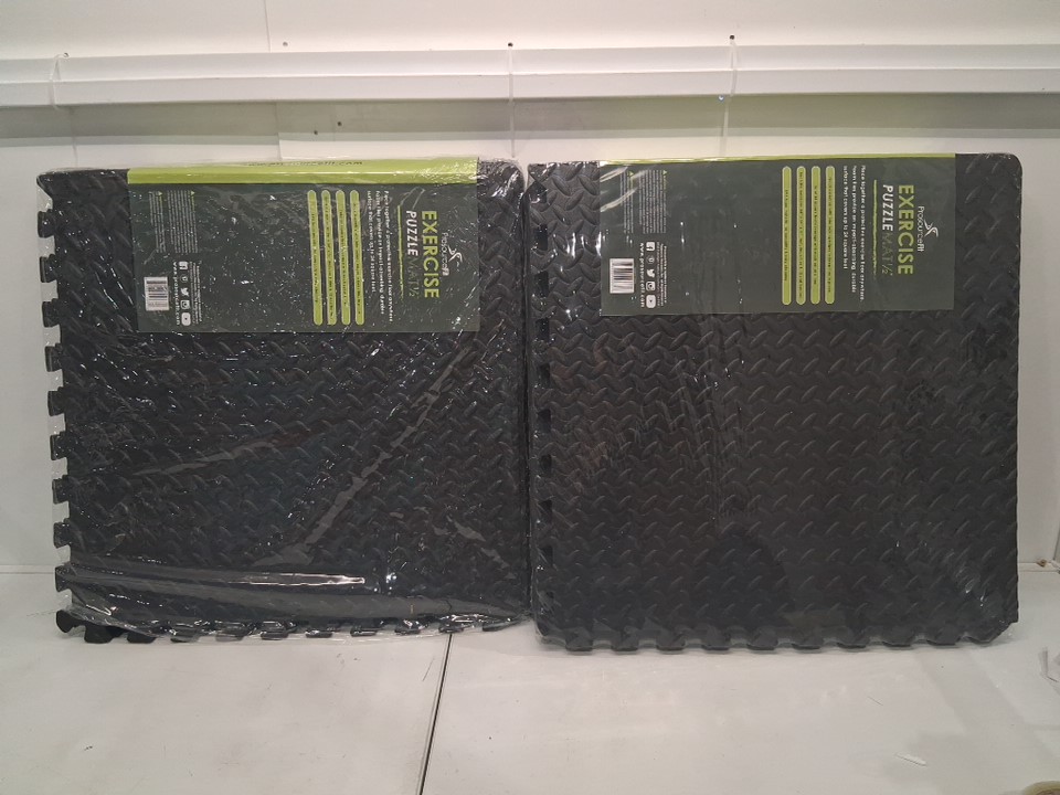 18PK PROSOURCEFIT Puzzle Exercise Mat EVA Foam Interlocking Tiles - 24" x 24" x 1" - black