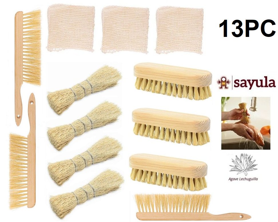 13PC SAYULA traditional modern living body brush and scrub home cleaning set - made from lechuguilla agave fibers