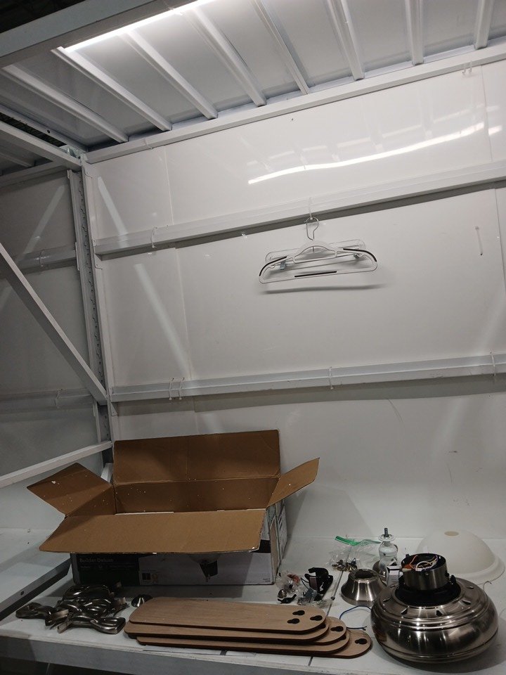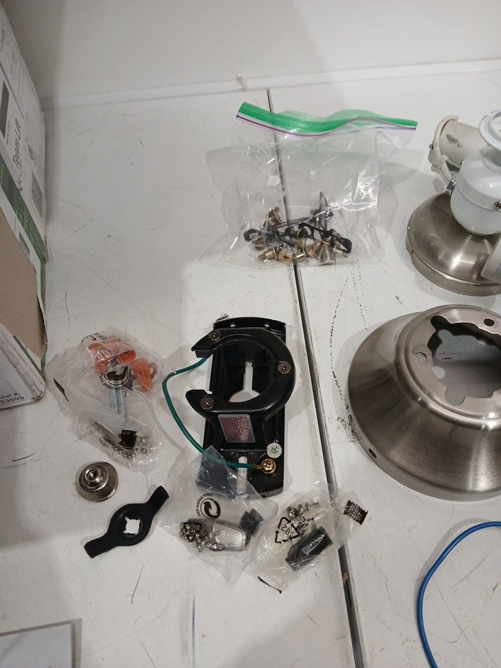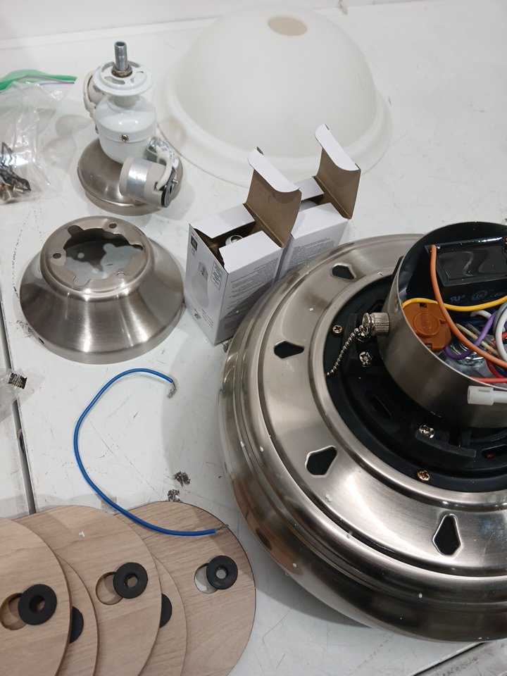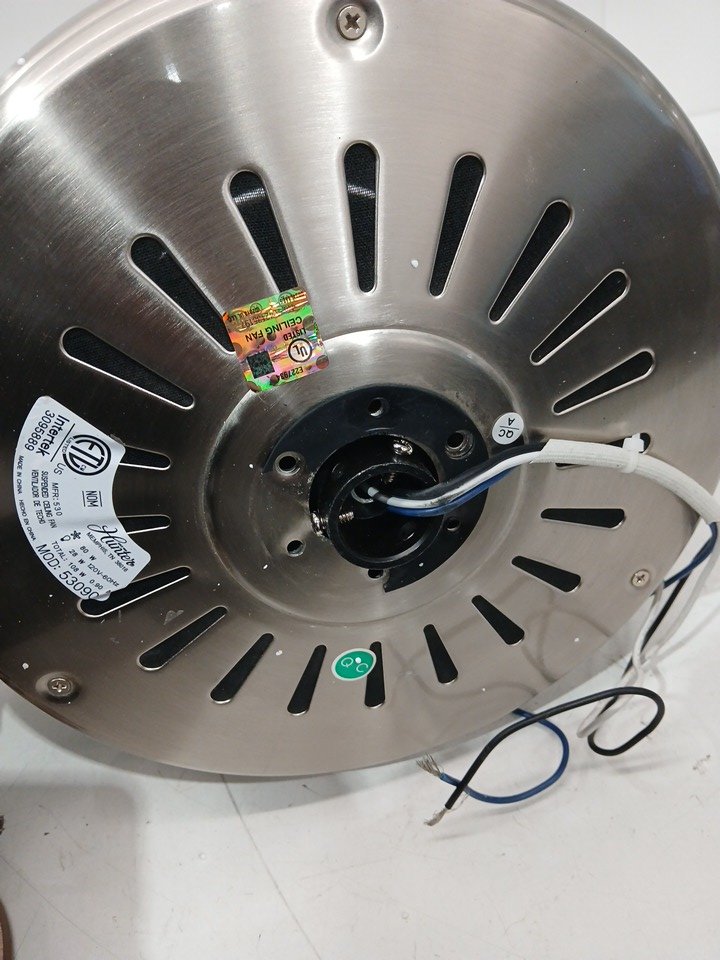 A wire is loose and there is scuffing on one of the blades showing item was handled.