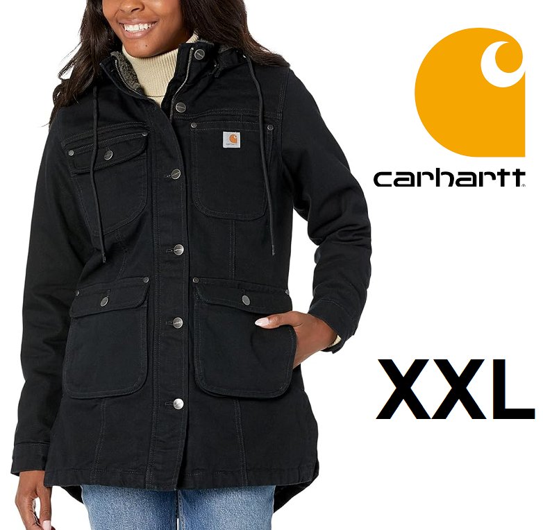 WOMEN'S CARHARTT Loose Fit Weathered Duck WASHED Coat - XXL - BLACK