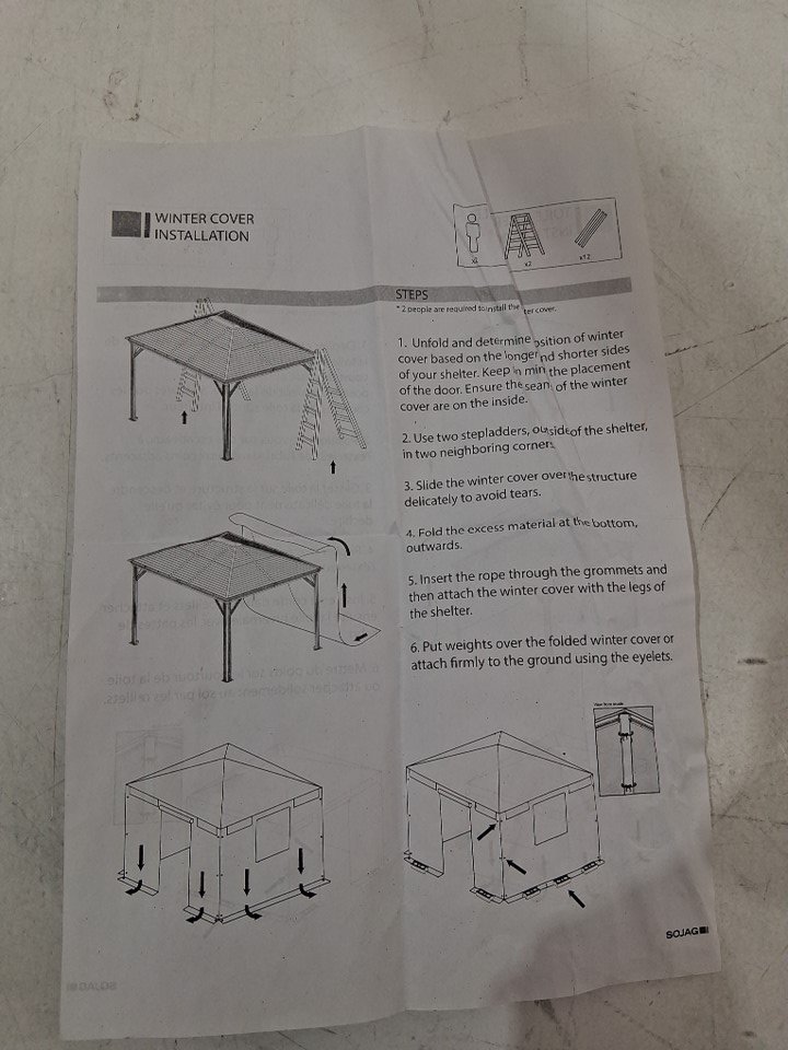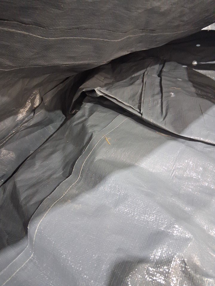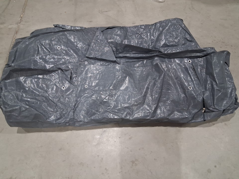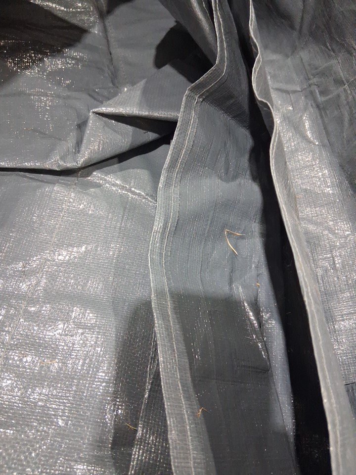 There are some light dirt stains, bits of dead grass, and a light smell of the outdoors lingering on the cover indicating some previous use, but appears to be in good condition with no visible damage - see photos.