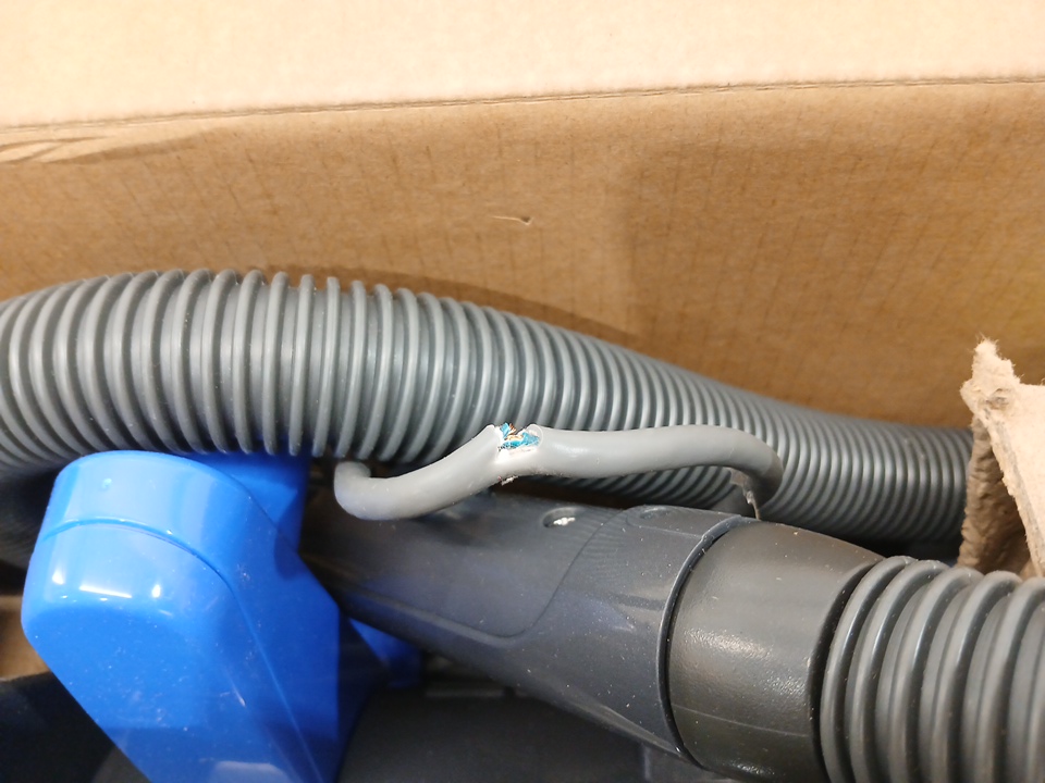 This item is a little dirty and has some water in the tank from previous use. The cable has a small tear, but it is cosmetic. This item has been tested for power