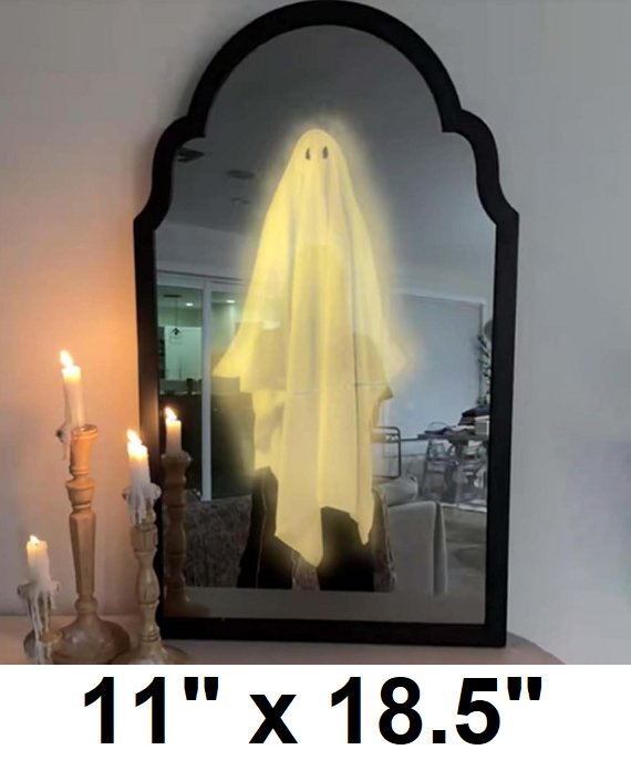 2025 Halloween Martha Stewarts Ghost Hologram Mirror Halloween Decorations - 11" x 18.5" - black