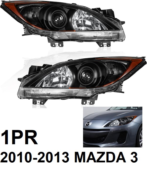 1PR kuiperauto HEADLIGHT housing assembly replacement halogen with clear lens - 2010-2013 Mazda 3 - Replaces MA2518130/MA2519130 (Model: K105GG60202KKJ5)
