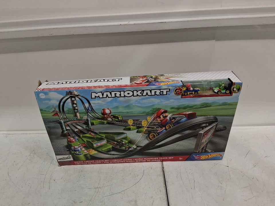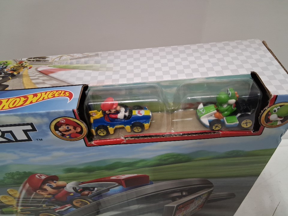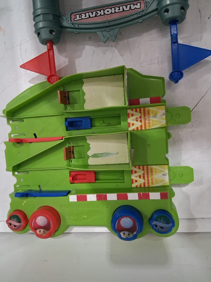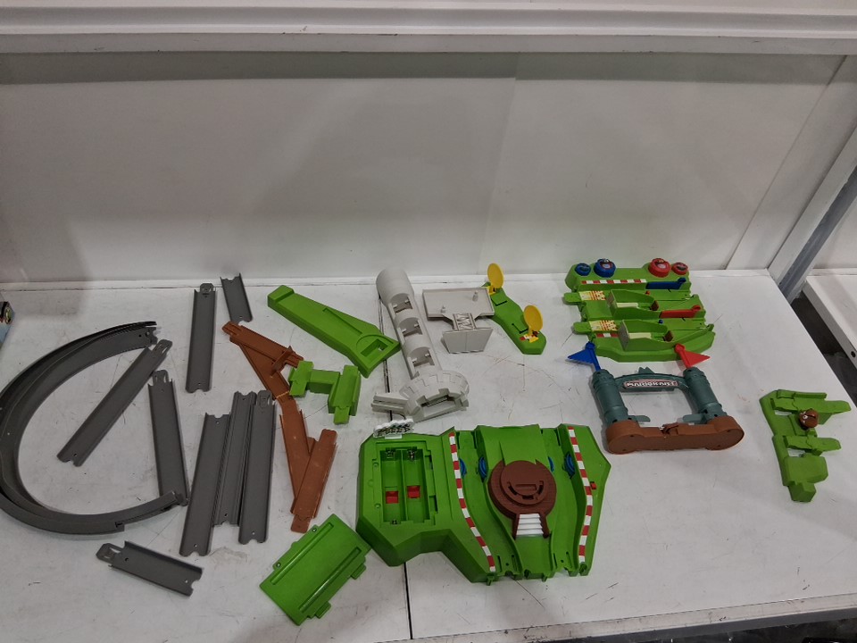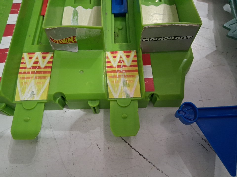 Tested for power, working. Missing multiple track pieces/connectors and has cracked track pieces, scuffs from use and stickers peeling. Could still be used for extra pieces for other hot wheels track possibly as the car boosters work