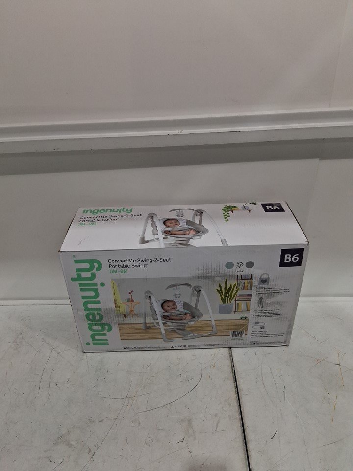 INGENUITY convertme 2-in-1 compact portable plug in automatic baby swing and infant seat - 0 to 9 months - 6lbs to 20lbs - grey - (model: 12189-es)