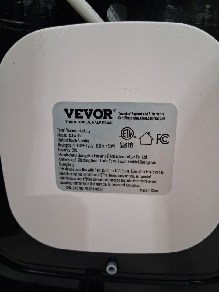 VEVOR Large Hot Towel Heater Bucket for Bathroom - 20L - white/black (MODEL: HSTW-12)