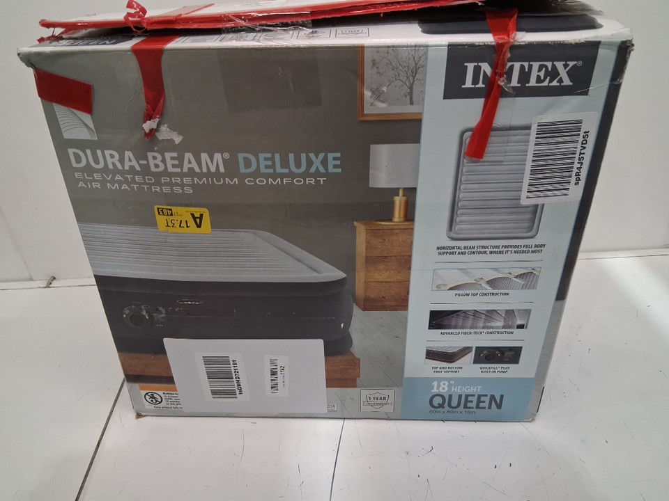 INTEX DURA-BEAM SERIES DELUXE COMFORT PLUSHFIBER-TECH inflatable AIR mattress WITH INTERNAL ELECTRIC PUMP - 18" - QUEEN - grey (MODEL:AP619D/64413ED)