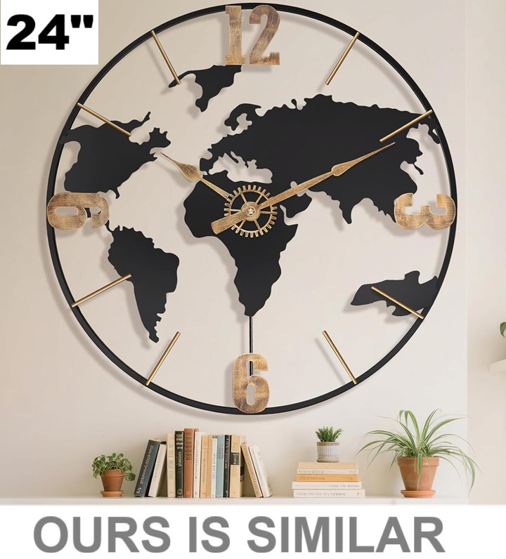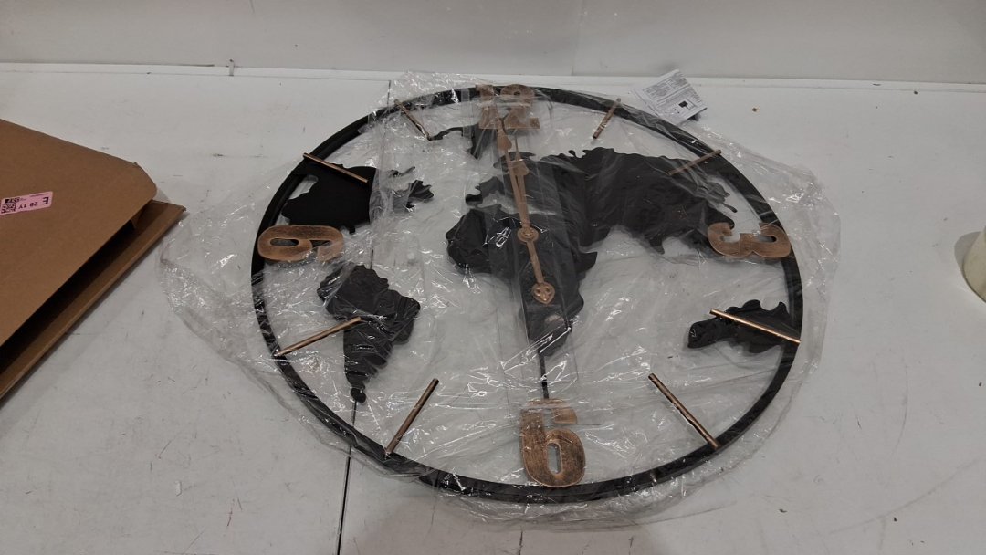 unbranded decorative wall mounted analog metal map of the world clock - 24" round - black