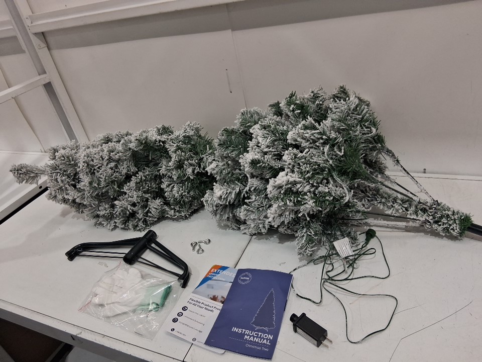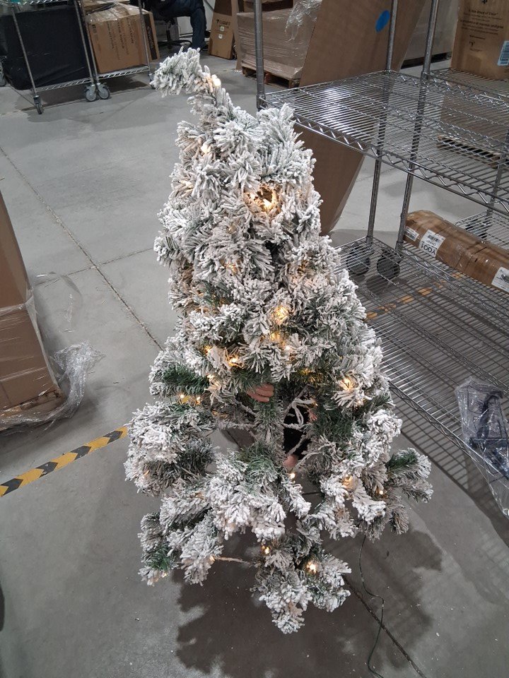 Garvee Pre-Lit Flocked Artificial Christmas Tree with foldable base - 4.5ft - green/white