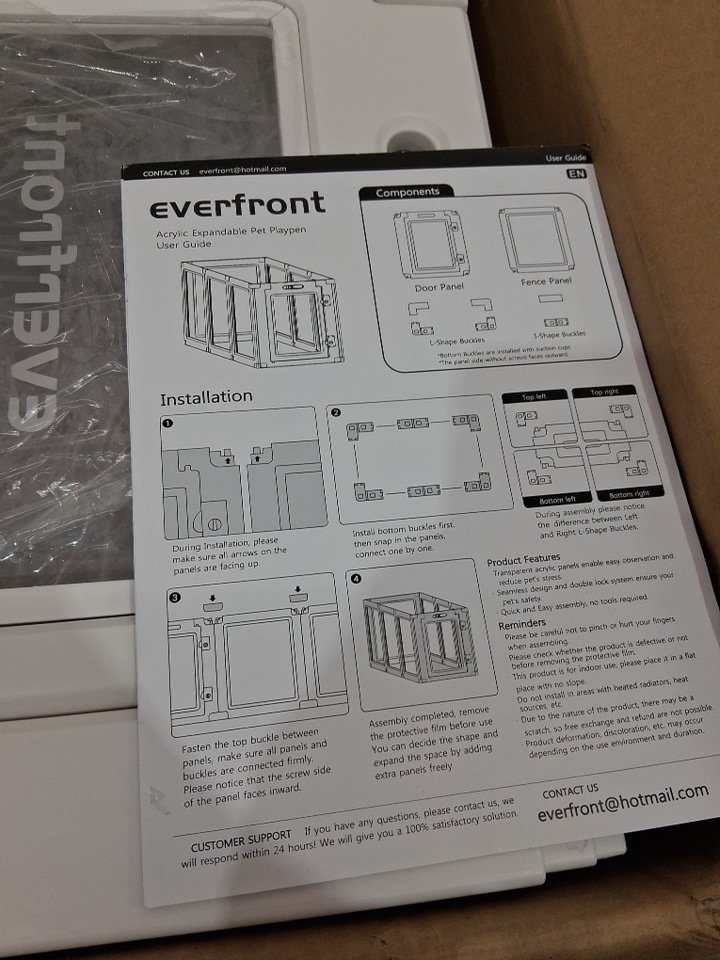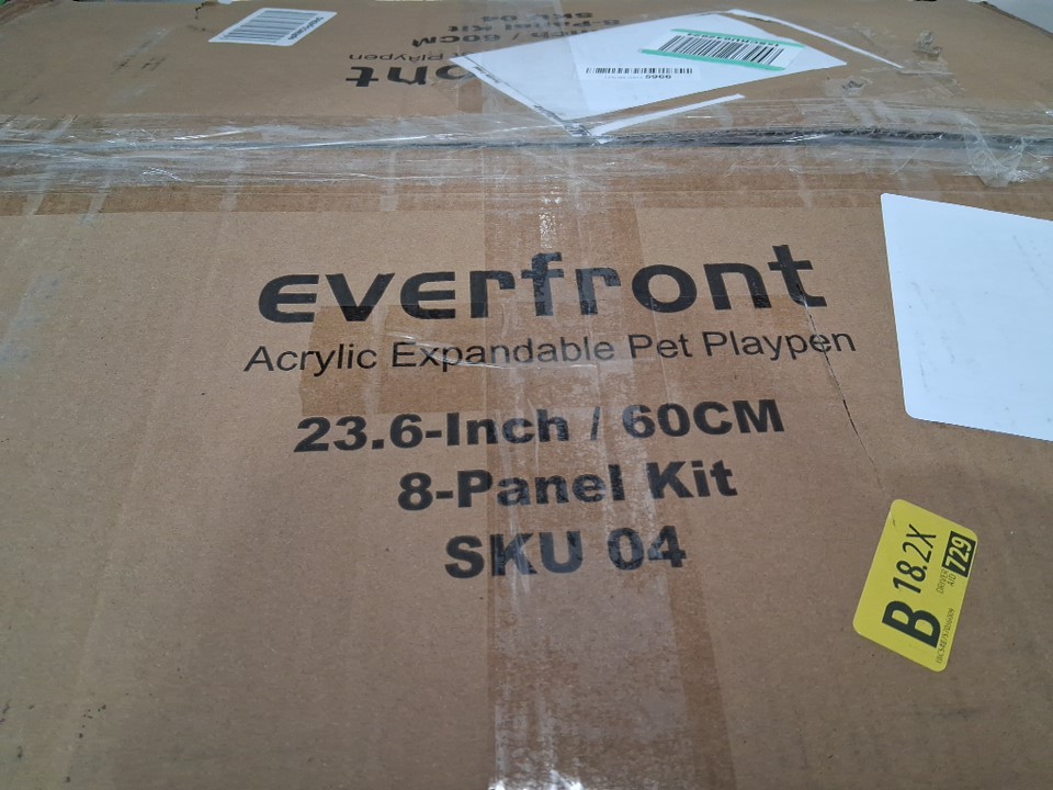 Everfront Easy Assemble Foldable Indoor Clear Acrylic Plastic Pet Playpen - 23.6" x 19.7" per panel - 10.8ft² total - for Small / Medium Dogs - White - (Model: 60-8P)