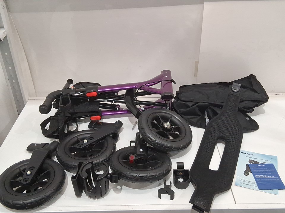 MAXWALK foldable all terrain rollator Walker with seat for seniors - 10" Big Rubber Wheels - purple/black (model: ‎MW2404)