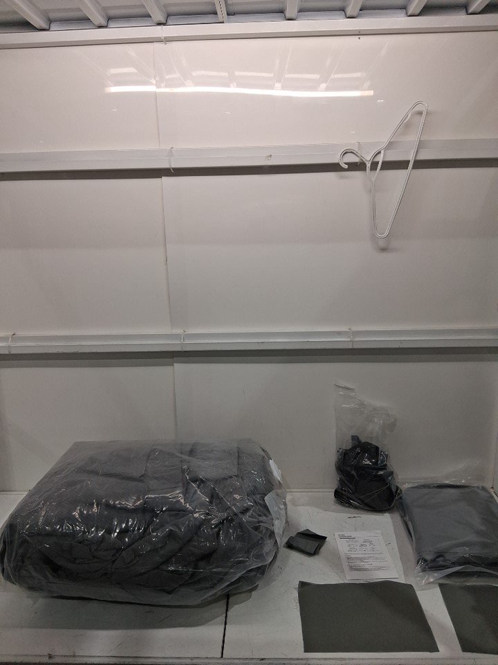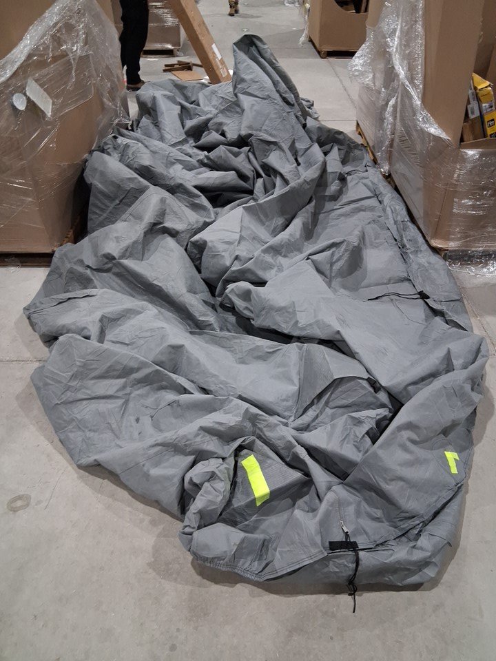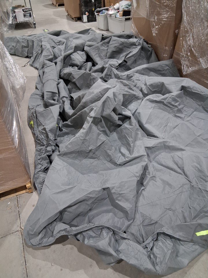 product has some staining present from previous use as well as some water that was observed to have been present on the cover itself. some leafs and debris as well was present on the cover.