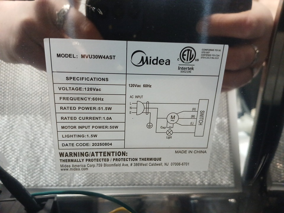 midea under cabinet convertible slim range hood - 30" - 60hz - 120v - 65dpa - silver (model: MVU30W4AST)