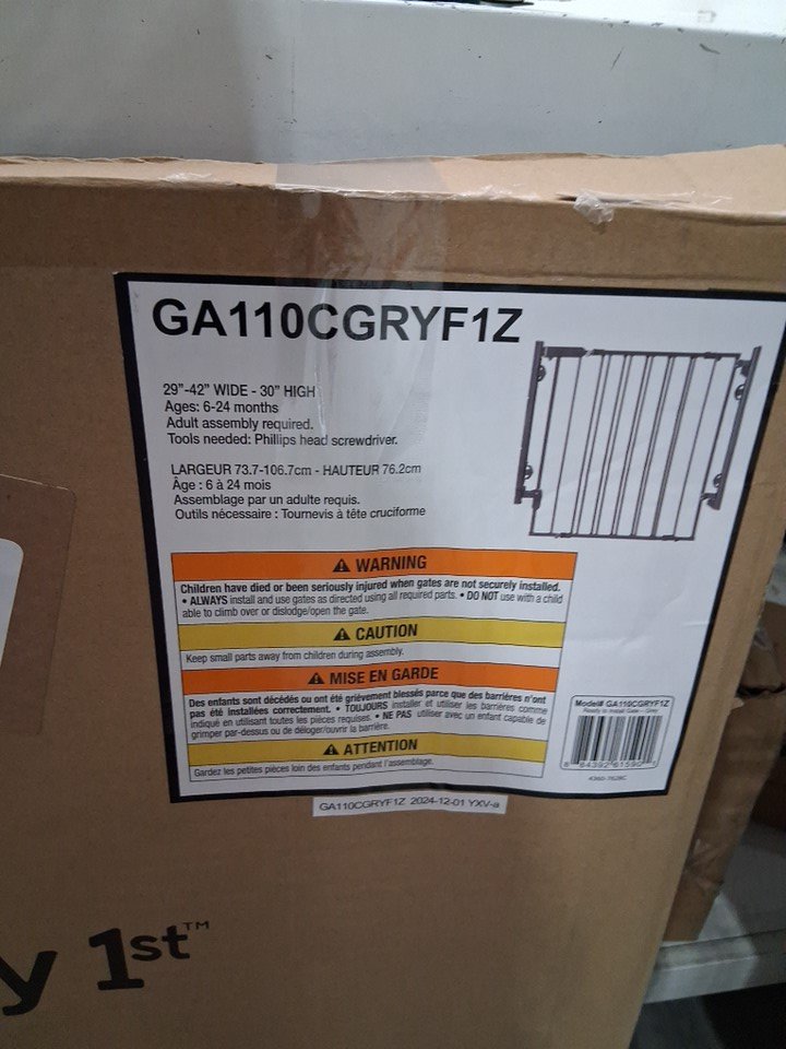 SAFETY 1ST READY TO INSTALL WIDE FULLY-ASSEMBLED BABY GATE - 29" to 42" X 30" - GREY/DARKGREY - (MODEL: GA110CGRYf1z)