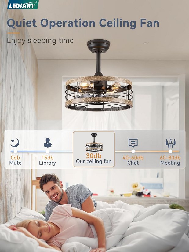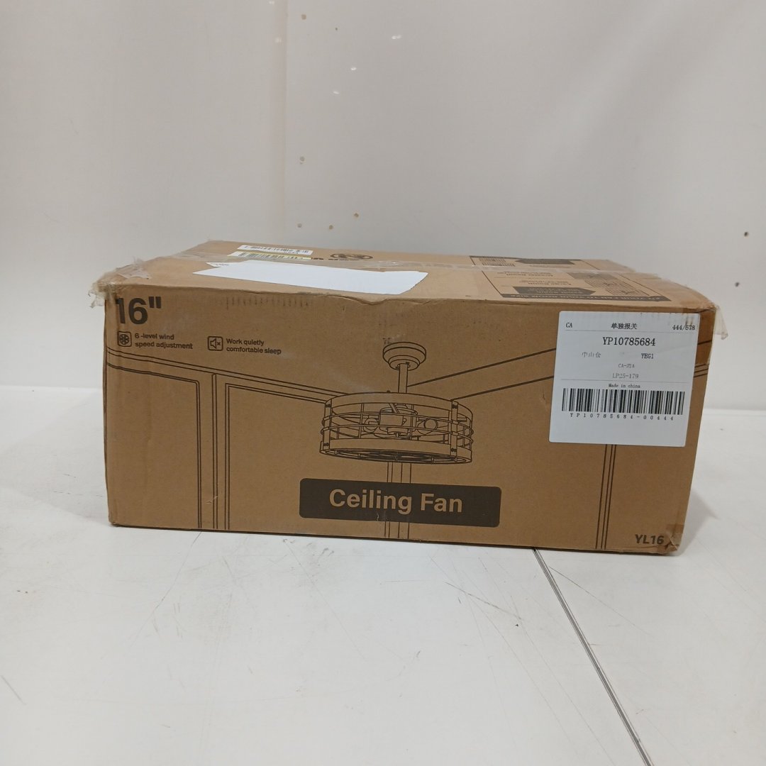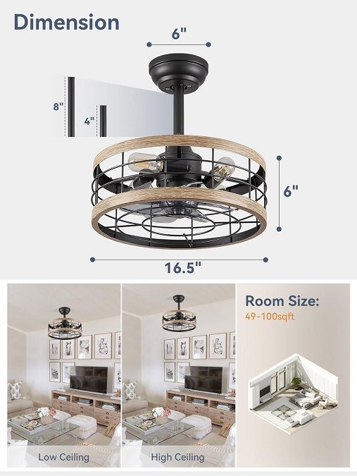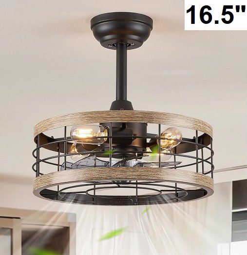 LEDIARY 16.5" CAGED INDUSTRIAL CEILING FAN LIGHT FIXTURE WITH REMOTE - 6 SPEED - RUSTIC, BLACK (MODEL: Y25FSD009-3601 BR)