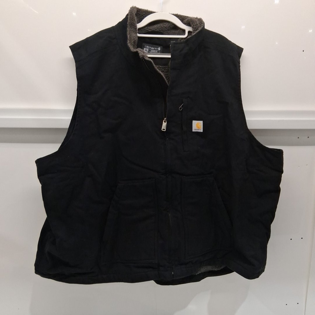 MEN'S CARHARTT LOOSE FIT WASHED DUCK SHERPA-LINED MOCK-NECK VEST - 4XL TALL - black (style: OV4277-M)