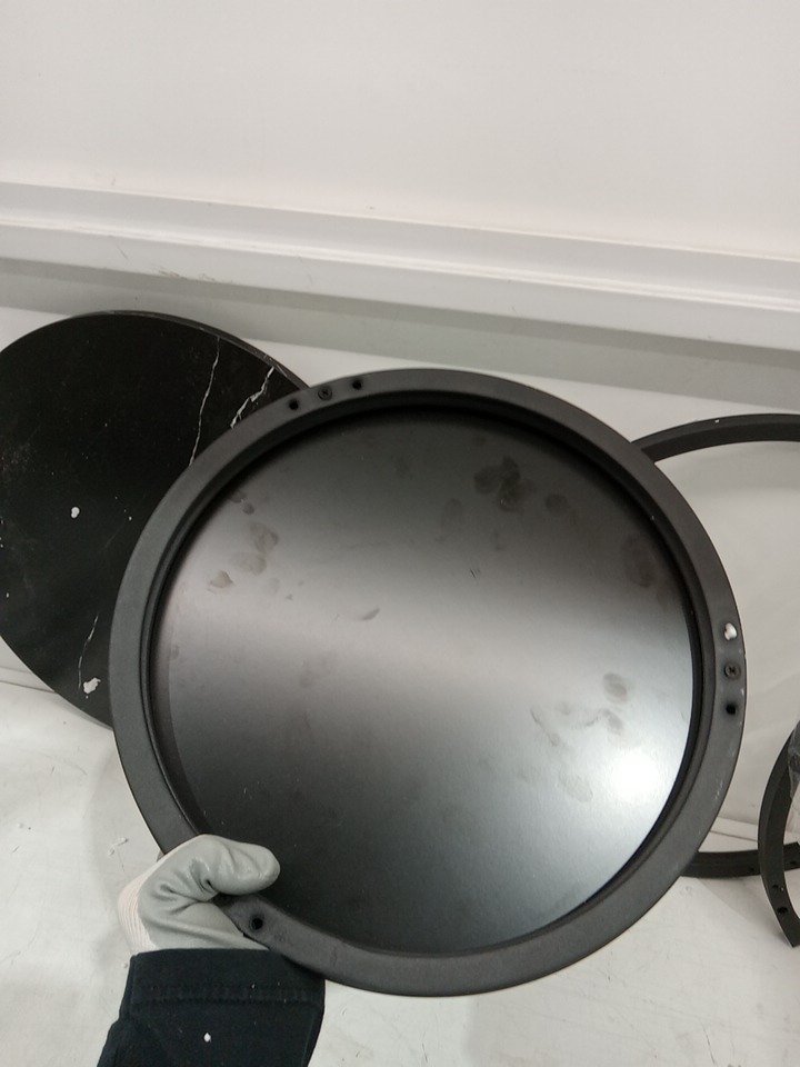 Please note that there are installation marks and scratch marks on the metal frame, two of the metal frame has a crack, the crack may develop in the future. May require additional generic hardware to install the product. (Please see photos)