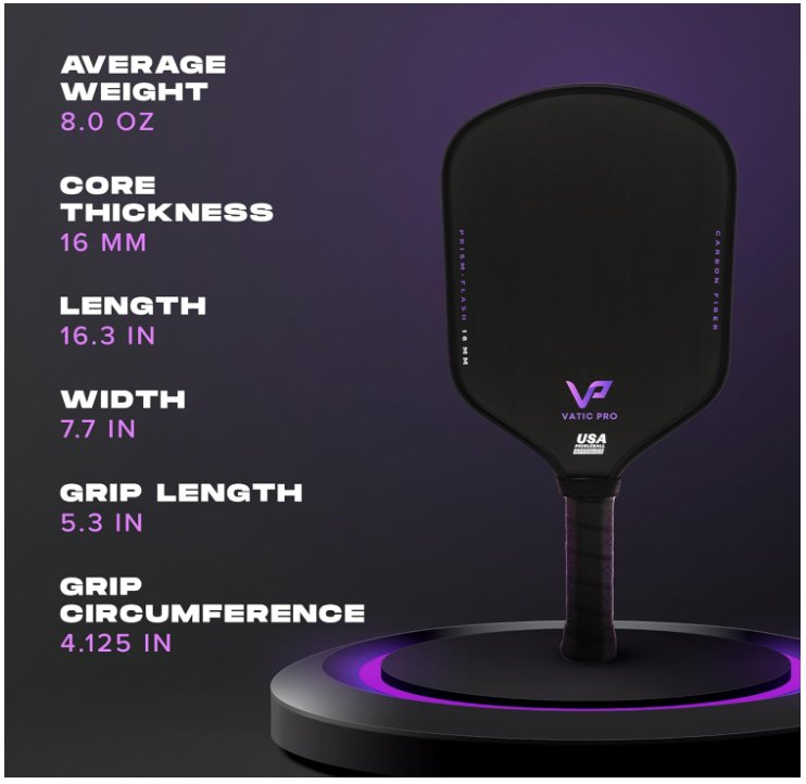 Vatic Pro Prism Carbon Fiber pickleball paddle - 16mm - Foam Injected Walls - Includes Paddle Cover - black/purple