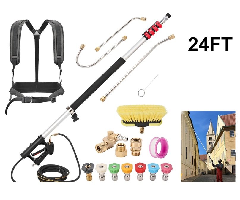 CREEXEON Telescoping Pressure Washer Wand Gutter Cleaner Attachment Pivot Angle Coupler - 24FT - black (model: ‎TW103)